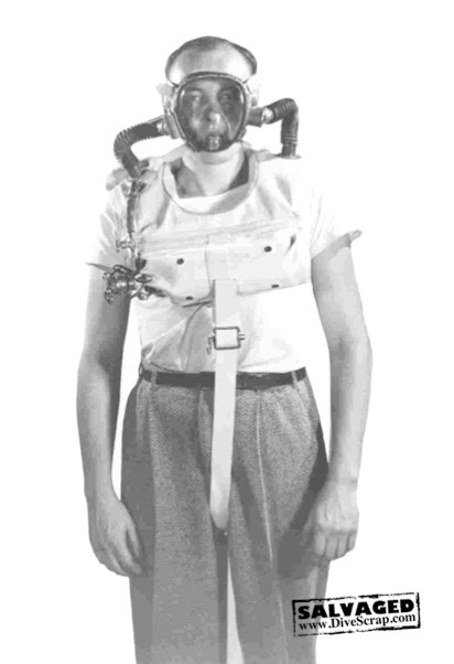 DESCO B-Lung This is the unit first developed for the OSS and U.S. Navy during WWII. The first units used a oval mask with a nose bump out. ( images & info www.descocorp.com )