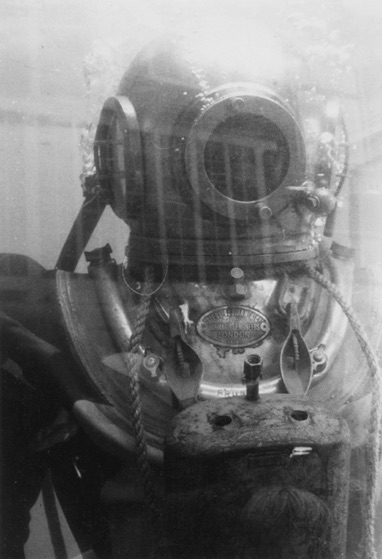 Myself in 1984 being dressed before giving a hard hat diving demonstration in a mini container with windows back in 1984 in Hoorn, North Holland