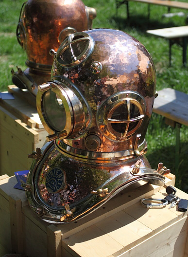 The company founder Roberto Galeazzi was bon in livorno in 1882. Galeazzi’s went in to the construction business in the nineteen thirties. The first diving helmet he manufactured he called the ‘Marina’, this is also the most common Galeazzi helmet. ( in fact this helmet is still being manufactured today ) The name ‘Marina’ was given to this helmet because Galeazzi used the official navy drawings to build it, drawings which the navy supplied to all helmet makers in 1905 to create a ‘standard’. The navy calls this helmet the ‘Modello 1905’ ...