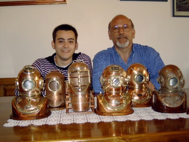 In 1997, following my passion for mechanics and the dream of having a Diver helmet, I built my first full size Masuccisub helmet. Some friends asked me to make smaller models for giveaways and prizes. I have made three prototypes on a small scale perfectly identical to the full size Galeazzi Marina and has been a success. Later, with the experience and the curiosity to do new things, I built 12 models of different brands, Italian, English and Americans with the standard of accuracy that distinguishes my work for years.