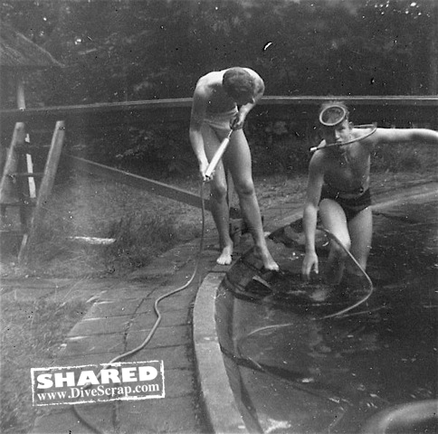 In 1967 Jaap Stenger founded the Benelux Diving Corporation in Antwerp, Belgium. In 2007 he retired after having been a diver and managing director for 40 years. But Jaap entered the under water world long before 1967. Initially Jaap built a hose with a mouth-piece to an inflatable beach-ball which buoyancy he compensated with a large stone. But the volume was not important enough to last much longer under water as with normal breath held diving so he had to improve the system. In 1959 Jaap constructed his first diving apparatus. The system was simple: at the surface an air pump meant to be used for inflating bicycle tires was coupled to a garden hose. This hose was connected to the inflatable beach-ball which was now placed in a wooden box that was carried on the divers back with a harness. At the beach-ball, that now served as a reservoir, one hose with a non-return valve went to the mouth piece from which a second hose led back to the wooden box with the exhaust valve, consisting of a ping pong ball right next to the beach ball. Thus equilising the pressure difference between breathing in and breathing out. To compensate the buoyancy of the diving apparatus Jaap made lead weights to put on a belt, these weights he casted himself in a cigar-tin. The apparatus, in many ways identical to the french Rouquayrol-Denayrouze apparatus, was tested by Jaap himself and other divers and functioned very well(!) Proper diving training Jaap got a few years later when he joined the army engineers divers unit. In 1967 he founded his own diving company.