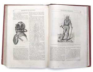 Louis Figuier. Hard cover book on several technical items. One large and well illustrated chapter showing the Rouquayrol-Denarouze and the Cabirol diving apparatus.