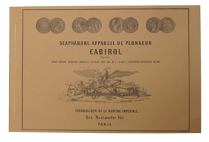 M. L. du Temple. Soft cover book. 30 pages plus a colored litho as a ‘center fold’ and a large fold out engraving in the back. This is a Diving Manual explaining how to use the Cabirol diving apparatus on board of ships.