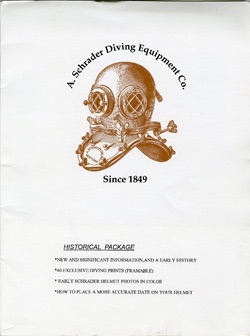 Sales catalog. Soft cover. 18 pages. B&W illustrations. This is a reproduction I once bought at a meeting of the Historical Diving Society in the USA. When you have other Schrader catalogs available then please let me know.