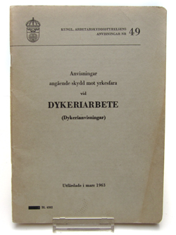 Hard cover book. 334 pages. Written by Jan Sundlöf and Hans Röckert. A complete diving manual with both hard hat diving equipment and SCUBA ( compressed air and rebreathers ) Well illustrated with B&W drawings and photographs.