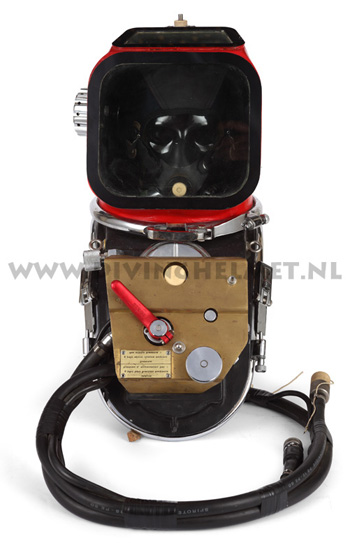 The photographs above show the fourth variation EIP5 helmet, which is the first variation EIP5 with a large square faceplate. Photographs David L.Dekker