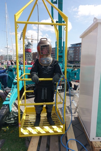 Above: the Working Equipment Group in Turku, Finland in 2016. A demonstration for the public visiting the ‘Day of Diving’. Even a small container is suitable for the job.