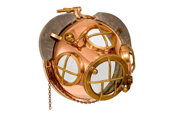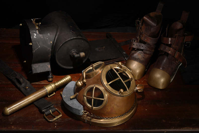 The genuine Rouquayrol Denayrouze ‘Pig Snout Mask’ which is in posession of the Holmen navy base in Kopenhagen, Denmark. Photographs David L.Dekker