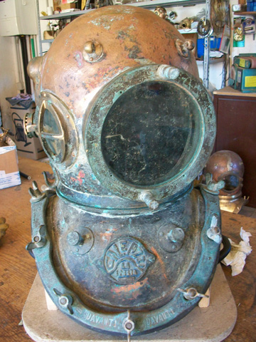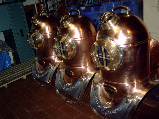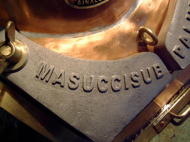 Masuccisub is a trade name established in 1997 by Maurizio Masucci. Back then he started the production of a full size 12 bolt diving helmet: the ‘Masuccisub’. Following this project a series of perfect scale models of diving helmets were built, these helmets deserve a place in the ‘art’ section on this website because you cannot dive with them. Since a couple of years Maurizio also manufactures ‘Shallow Water’ or ‘Open’ diving helmets.