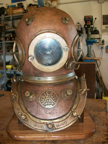 In 1997, following my passion for mechanics and the dream of having a Diver helmet, I built my first full size Masuccisub helmet. Some friends asked me to make smaller models for giveaways and prizes. I have made three prototypes on a small scale perfectly identical to the full size Galeazzi Marina and has been a success. Later, with the experience and the curiosity to do new things, I built 12 models of different brands, Italian, English and Americans with the standard of accuracy that distinguishes my work for years.