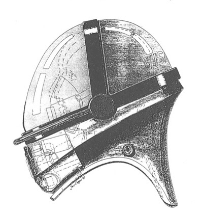 The main advantage of this helmet, which design-project started in 1990, is the fact that is is carried on the divers shoulders and not on his head ( spine ) This allows all heavy parts on the helmet to be placed at the lowest side of the helmet leaving the entire top part available for visibility. One mistake seems to have been made at that point: the lexan dome has no flat viewing port causing the divers view to be distorted by the convex shape of it. When speaking with a diver at the Bergen State Diving School it seemed that the helmet was well received by but that this distortion of the view lead to problems. ‘When you looked down to see how far you were away from an object or from the bottom you saw that you still had a few meters to go but in fact you were only a few cm’s away’. Very strange that they never produced this helmet with a better lexan dome ( like for instance the cheap and simple American ‘Aquabell’ diving helmet ) Inside the helmet the diver can freely move his head around because his oral-nasal is not built into the mainframe of the helmet, he wears an oxygen mask as used in Norwegian F16 fighter jets instead.