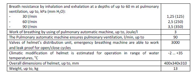 JSC “KAMPO” SVV-93 helmet and complete equipment. Designed for use to depth of 60 meters