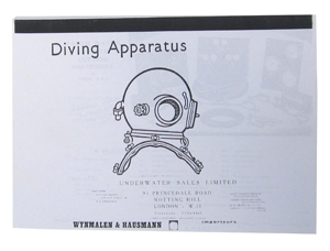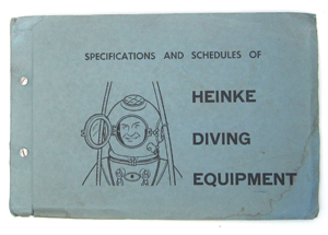 C.E. Heinke & Co. Ltd, circa 1959-60. Specifications and Schedules of HEINKE DIVING EQUIPMENT. Heinke & Co. Ltd., (Diving And Safety Equipment Engineers), Grange Road, London S.E.1. 98 pages 34 x 23 cm. Printed light blue wrapper with half line drawing of a smiling ‘standard’ diver.